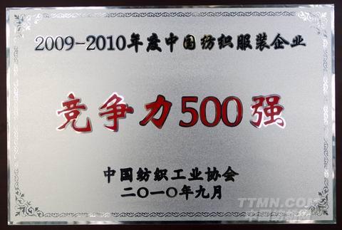 2010年9月19日,“2009~2010年度中國紡織服裝企業(yè)競爭力500強發(fā)布會” 在浙江海寧海洲大酒店隆重舉行,陜西寶成航空精密制造股份有限公司獲得了中國紡織服裝企業(yè)競爭力500強企業(yè)的殊榮,公司董事長賀武銀受邀出席了此次大會并代表公司接受了頒獎。