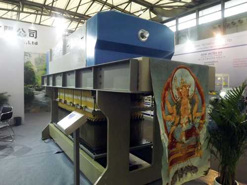 記者在展會(huì)現(xiàn)場(chǎng)看見杭州森匯展出的電子提花機(jī)生產(chǎn)的佛像圖容貌和姿儀皆祥和、寧靜、端祥、莊嚴(yán),生動(dòng)逼真,栩栩如生,精美絕倫。