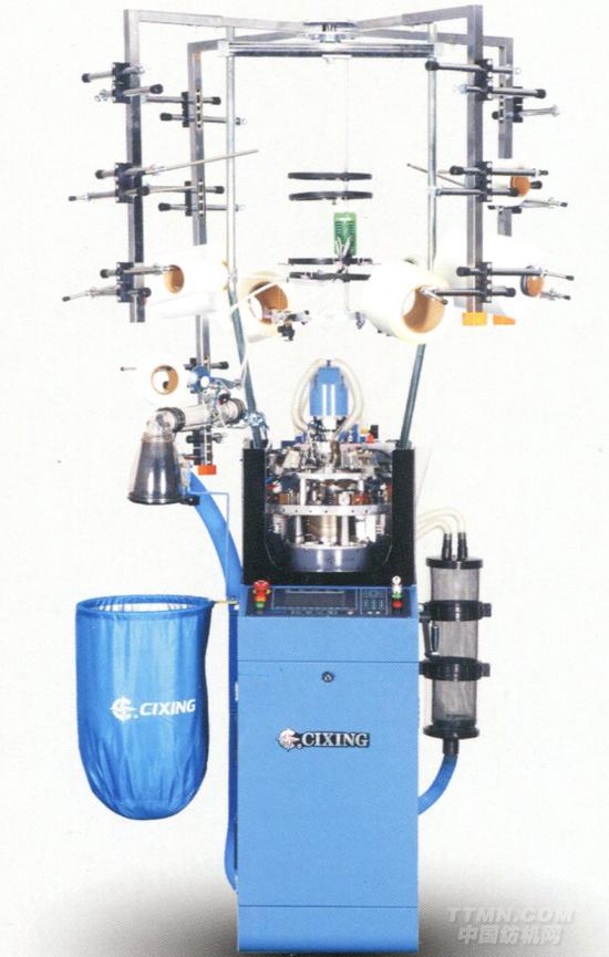 “慈星”牌GE04T型電腦高速絲襪機(jī)是由電腦控制的具有四路編織系統(tǒng)的單針筒提花絲襪機(jī),該機(jī)采用獨(dú)立抽風(fēng)機(jī)或中央抽風(fēng)系統(tǒng)進(jìn)行織物牽拉,并配備抗扭裝置,針筒轉(zhuǎn)動(dòng)采用伺服電機(jī)直接驅(qū)動(dòng)以減少傳動(dòng)鏈的傳動(dòng)誤差。生克三角的位置調(diào)節(jié)和針筒升降由步進(jìn)電機(jī)控制,便于產(chǎn)生不同疏密織物。潤滑系統(tǒng)采用機(jī)械式供油,同步潤滑控制溫升。每路均配有橫移梭子,由雙氣動(dòng)控制,改善織物翻紗現(xiàn)象。該機(jī)可使用合成纖維、人造纖維以及裸氨綸和包覆紗等原料生產(chǎn)絲襪產(chǎn)品,主要生產(chǎn)短襪、長筒襪、連褲襪等多種絲襪產(chǎn)品。
