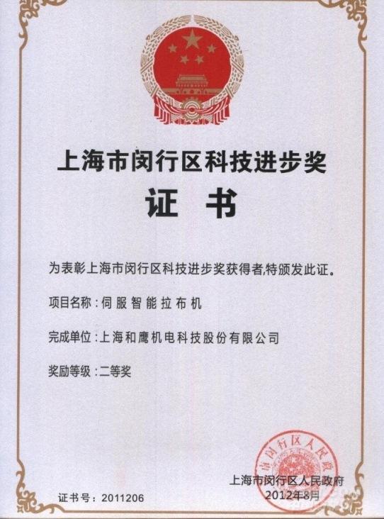 和鷹伺服智能鋪布機(jī)喜獲閔行區(qū)科技進(jìn)步二等獎(jiǎng)