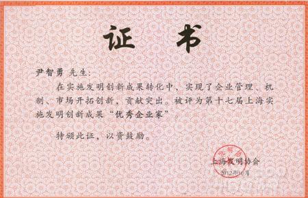 尹智勇董事長(zhǎng)榮獲第十七屆上海市實(shí)施發(fā)明創(chuàng)新成果優(yōu)秀企業(yè)家獎(jiǎng)
