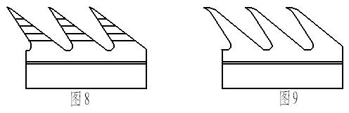 (1)總高h(yuǎn)1、齒深h6:齒深的大小直接關(guān)系到齒間容量的大小及分梳、均勻混合和轉(zhuǎn)移等作用的好壞。采用矮齒、淺齒,使纖維處于齒尖,與另一針面(蓋板、道夫)的接觸長度和作用齒數(shù)增加,錫林與蓋板交替作用增加,利于分梳、轉(zhuǎn)移,對減少棉結(jié)有利,解決了小工作角針布的轉(zhuǎn)移問題,也為增加齒密、增大前角創(chuàng)造了條件。h6小,減少纖維充塞,抗軋性能好,氣流產(chǎn)生弱,從而減少氣流外溢。但h6不能太小,否則貯存纖維量少,影響均勻混合作用。