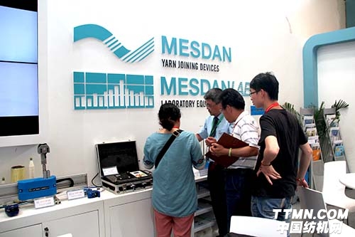 作為一個(gè)專業(yè)的全系列機(jī)械式打結(jié)器及空氣接捻器的生產(chǎn)商,意大利美斯丹(MESDAN)如往常一樣,在研發(fā)新品的同時(shí),也不忘在各大展會(huì)上展示自己。在2014年中國(guó)國(guó)際紡織機(jī)械展覽會(huì)暨ITMA亞洲展覽會(huì),意大利美斯丹攜ILLMAN SPLCER101手動(dòng)式包纏器、HUMY TESTER Code185B手提式紡織含潮率測(cè)試儀、JOINTAIR 4941A 手動(dòng)式空氣捻接器、Neps And Trash Indicator Code3280A 棉結(jié)及雜質(zhì)分析儀和新產(chǎn)品MOISTAIR 6901型噴霧捻接器亮相。盛大的產(chǎn)臺(tái)規(guī)模,先進(jìn)的產(chǎn)品演示,讓美斯丹展臺(tái)人流如織。