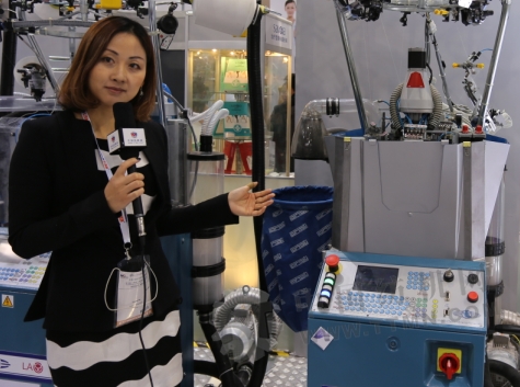 何小姐:在棉襪這一方面用自動對冒來代替人工縫頭.此次展會還帶來一些新款棉襪機,它主要功能是帶縫頭的,可以代替手工縫頭,節(jié)省了人工的程序.