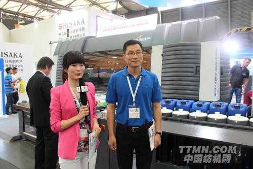 錢經(jīng)理:好的,首先我糾正一點,這臺機器是比較新,但是它在中國是第三次參加這種類型的展會了,參加這個上海紡機展是第二次,去年參加過一次ITMA展會。我們這個設(shè)備目前在中國的市場也在逐漸打開,客戶的數(shù)量在逐漸增加。但是中國數(shù)碼印花的發(fā)展有一個漸進的過程,總體來說2013年相比2012年,有更多的印染行業(yè)同行在關(guān)注數(shù)碼紡織印花。