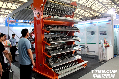 2014年中國國際紡織機(jī)械展覽會(huì)暨ITMA亞洲展覽會(huì),江蘇法華重點(diǎn)展示了GT12TD3D/GT12TD4D T型滌綸機(jī)。該產(chǎn)品采用了法國同類技術(shù),獨(dú)特T型結(jié)構(gòu)設(shè)計(jì),熱箱接近水平放置的安裝結(jié)構(gòu)使機(jī)器高度為3.2米和3.5米,送絲羅拉接近熱箱入絲口的設(shè)計(jì)省略了生頭導(dǎo)軌和止捻器,使生頭操作更簡單快捷。是目前市場上唯一集單邊獨(dú)立控制、單錠馬達(dá)驅(qū)動(dòng)、多層防疊等多種先進(jìn)技術(shù)為一體的高速紡紗機(jī)。由于場地限制,公司還有很多產(chǎn)品未被展出。