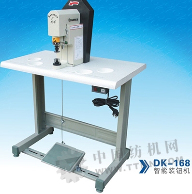 高經(jīng)理:這臺(tái)機(jī)器叫雙面小圓機(jī),采用9寸針筒上下插片,是專門制作襪褲的,這臺(tái)小圓機(jī)克服了以前小圓機(jī)的一些弊端,包括從轉(zhuǎn)布機(jī)、織布效果,這上面都改變了好多,也申請(qǐng)了好多專利。這邊一臺(tái)是裝裝鈕機(jī),用于服裝上釘扣的,這種機(jī)器的這種結(jié)構(gòu)只有中國(guó)我們一家在生產(chǎn),已經(jīng)審批下來六項(xiàng)專利了,可以起到防打手節(jié)能功能。