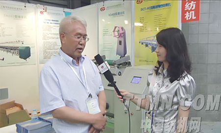 段董:這次紡機(jī)展我們推出三款新產(chǎn)品,其中主打的是兩款,根據(jù)這幾年國(guó)內(nèi)的纖維的變化很大,特別是超細(xì)的纖維,以及高彈的纖維,這些纖維的要求就是對(duì)松色染色提出了一個(gè)新的理念,用原來的絞裝染色現(xiàn)在變?yōu)樗缮沧尤旧,可以大量的?jié)約用水,從環(huán)保上從節(jié)能上從排污上是一個(gè)大的要求,我們迎合這個(gè)要求就開發(fā)了這兩款重點(diǎn)產(chǎn)品,就是解決一些,特別是針對(duì)現(xiàn)在國(guó)內(nèi)的紡織產(chǎn)品的檔次不斷的提高,纖維的要求也提高了,那么對(duì)機(jī)器的要求也就更高了,那么我們這次推出的兩款產(chǎn)品,一個(gè)焦點(diǎn)是高速,第二個(gè)是松色,第三個(gè)強(qiáng)調(diào)一個(gè)密度,這樣就解決了很多客戶現(xiàn)在在發(fā)展纖維的過程中碰到的染色的難題,同時(shí),現(xiàn)在高速織機(jī)的廣泛使用對(duì)于退解地速度要求很高,特別是針織行業(yè)和色織行業(yè),這兩塊的發(fā)展特別的快,對(duì)于絡(luò)筒的成型漲力防疊要求也高了,所以這兩款機(jī)器的關(guān)鍵的特點(diǎn)是它可以做到高速,在高速的狀態(tài)下可以做到松色,在松色的狀態(tài)下可以解決一個(gè)防疊、解決一個(gè)密度,同時(shí)這次特別有一個(gè)優(yōu)勢(shì),就是隨機(jī)的變化,就在線漲力,可以說在國(guó)外也是近幾年發(fā)展的,在國(guó)內(nèi)大家都在研究,當(dāng)然我們已經(jīng)走得比較前面了,這一個(gè)技術(shù)在我們這兩款機(jī)器已經(jīng)體現(xiàn)出來了,這就是我們公司這次帶來的三個(gè)產(chǎn)品的兩個(gè)重點(diǎn)產(chǎn)品。