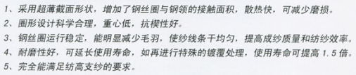 我公司是棉紡平面鋼領的專業(yè)化生產(chǎn)企業(yè),是全球最大的鋼領生產(chǎn)、銷售企業(yè)。產(chǎn)品采用優(yōu)質(zhì)碳素鋼、鈦合金、軸承鋼、高精度軸承鋼等不同材質(zhì),表面處理有光面、鍍鉻、鍍膜、微晶、硫化等多種不同工藝的處理,能滿足客戶的不同使用要求。產(chǎn)品年銷售量達3500萬只左右,國內(nèi)市場占有率達30%,居國內(nèi)同類生產(chǎn)廠家之首,目前已擁有1000多個國內(nèi)外棉紡、整機客戶,并出口東南亞、中東等地區(qū),出口占總銷量的35%,占國內(nèi)同類產(chǎn)品出口總量的90%。“航月牌”棉紡平面鋼領深受國內(nèi)外用戶的廣泛贊譽,企業(yè)多年來榮獲省、市文明單位、科研型企業(yè)、資信AAA級等榮譽稱號。