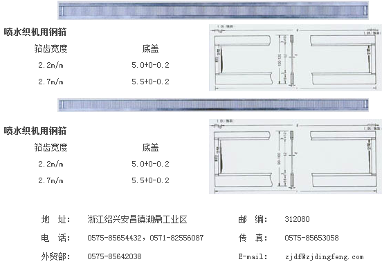 本產(chǎn)品采用不銹鋼筘片、不銹鋼筘邊與50°焊錫加工而成。產(chǎn)品具有筘面平整、筘眼均勻、筘齒光亮、耐磨、維修方便等優(yōu)點,適用于各種類型的進口或國產(chǎn)的噴水織機使用。