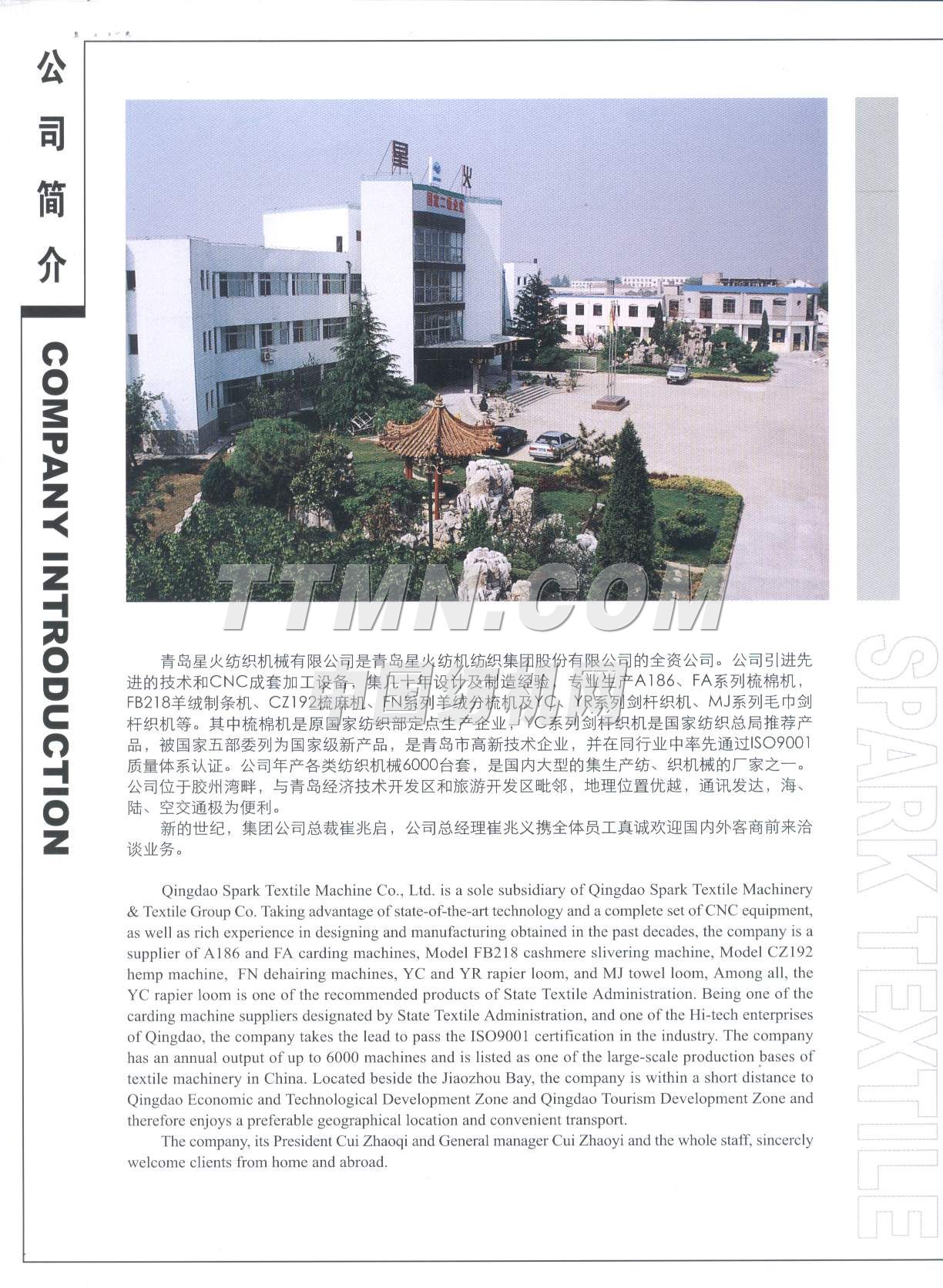 青島星火紡織機(jī)械有限公司是青島星火紡機(jī)紡織集團(tuán)股份有限公司的全資公司。公司引進(jìn)先進(jìn)的技術(shù)和CNC成套加工設(shè)備,集幾十年設(shè)計(jì)及制造經(jīng)驗(yàn),專業(yè)生產(chǎn)YC、YR系列劍桿織機(jī)、MJ系列毛巾劍桿織機(jī)及A186、FA系列梳棉機(jī)、FN系列羊絨分梳機(jī)、CZ192系列高速變頻梳麻機(jī)、FB218系列羊絨制條機(jī)等。其中YC系列劍桿織機(jī)是國家紡織總局推薦產(chǎn)品,梳棉機(jī)是國家紡織部定點(diǎn)生產(chǎn)企業(yè),被國家五部委列為國家級(jí)新產(chǎn)品,是青島市高新技術(shù)企業(yè),并在同行業(yè)中率先通過ISO9001質(zhì)量體系認(rèn)證。公司年產(chǎn)各類紡織機(jī)械6000臺(tái)套,是國內(nèi)大型的集生產(chǎn)紡、織機(jī)械的廠家之一。