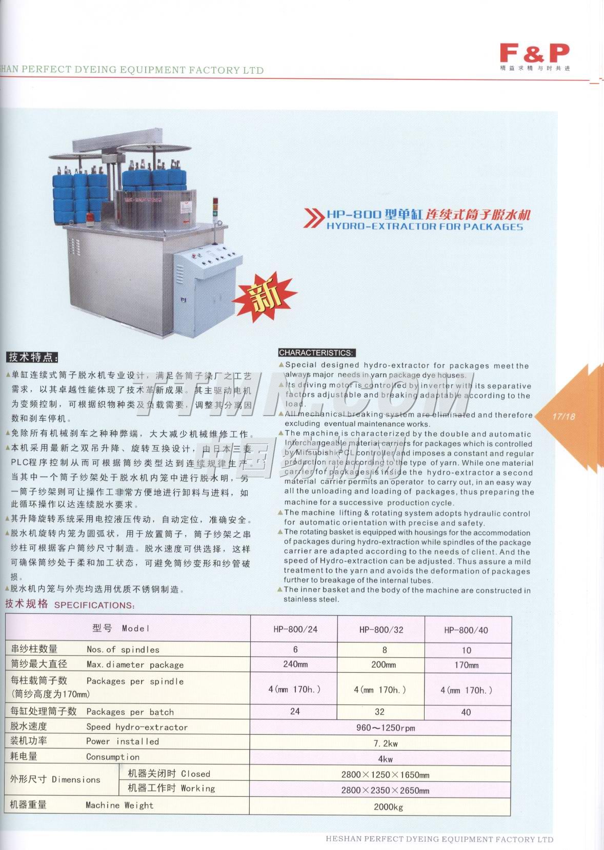- [產(chǎn)品]--> HP-800型連續(xù)式自動筒子脫水機(jī)