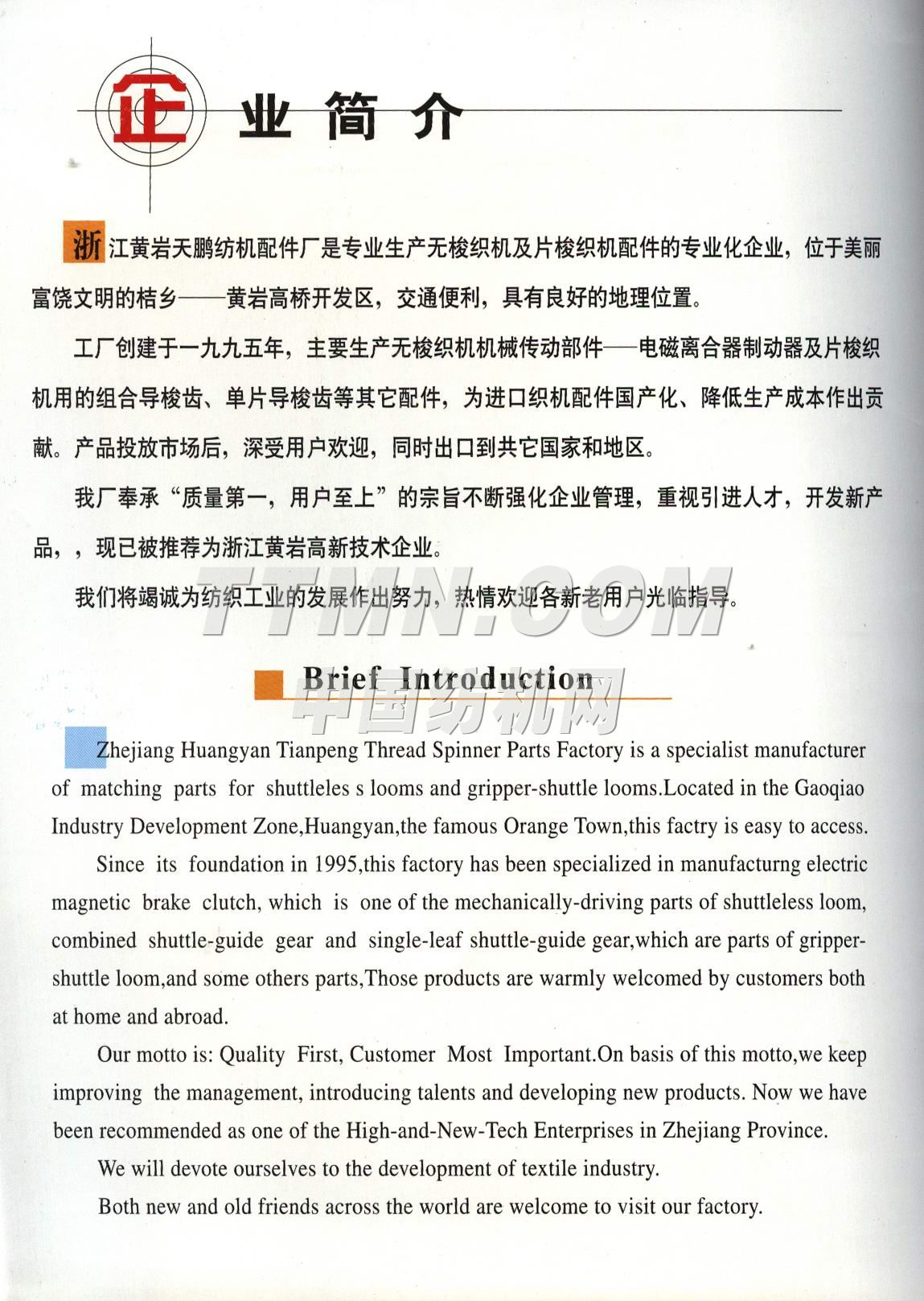 • 浙江黃巖天鵬紡機(jī)配件廠