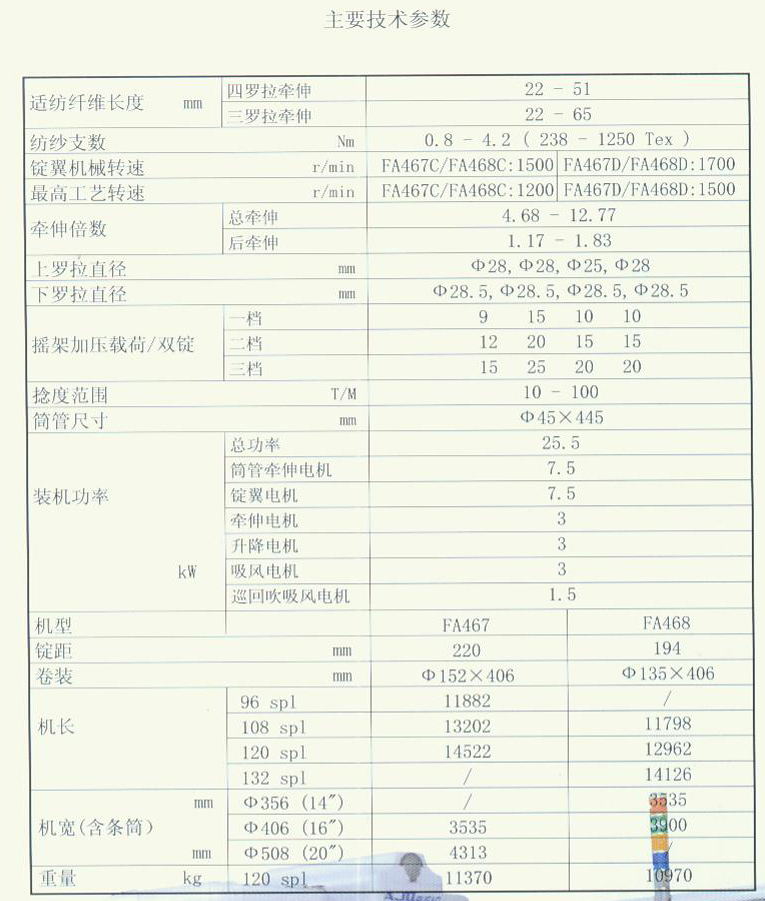 FA467C FA468C型懸錠粗紗機是采用先進的PLC及計算機控制開發(fā)的高速懸錠粗紗機,是在FA425的基礎(chǔ)上對機械結(jié)構(gòu)進行簡化,取消了差速機構(gòu),采用變頻系統(tǒng)替換傳統(tǒng)的傳動機構(gòu),取消了除牽伸以外的配換齒輪,是目前國內(nèi)最先進的機電一體化四電高速懸錠粗紗機之一。