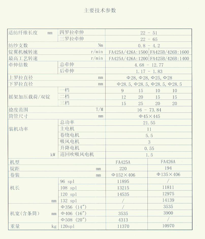 FA425A/426A懸錠粗紗機是在FA421.FA423型粗紗機基礎(chǔ)上吸收國外先進技術(shù)研制的,該機型取消了成形錐輪傳動裝置的控制,采用當(dāng)今最先進的微電子控制技術(shù).變頻調(diào)速技術(shù).精密CCD傳感技術(shù),觸摸屏變頻器,光電自停和自動潤滑等技術(shù),適用于普梳和精梳棉型及人造纖維的純紡和混紡,達到了國際水平