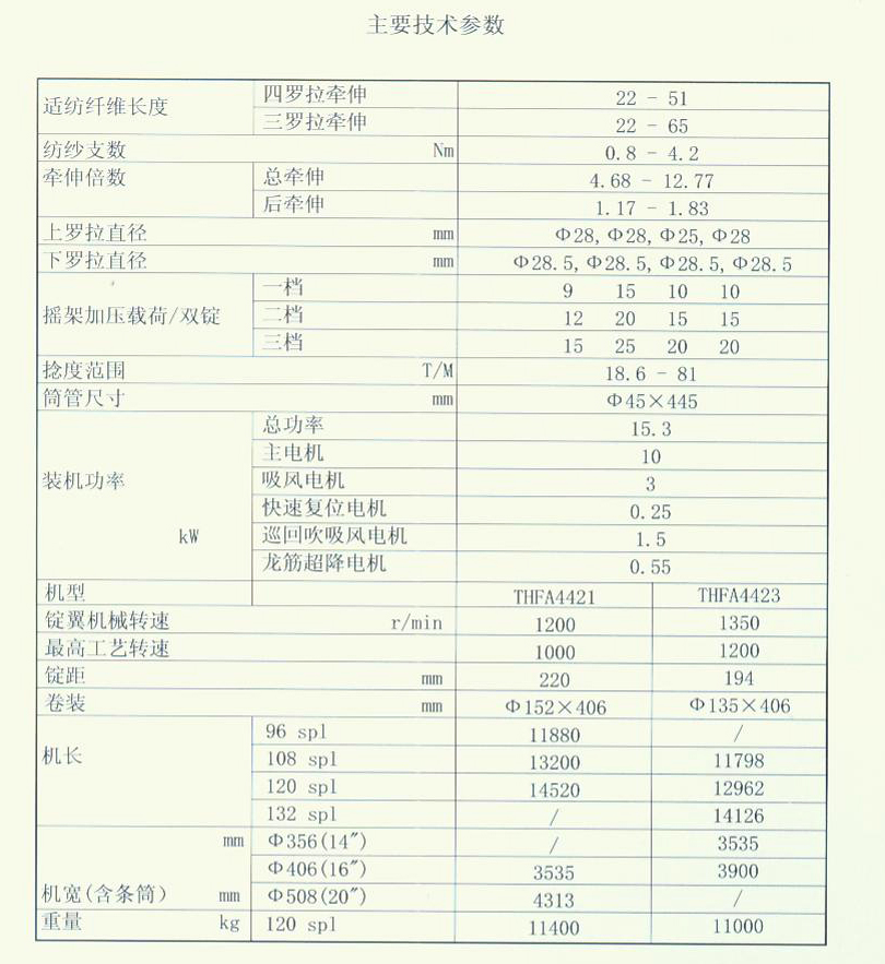 THFA4421/4423懸錠粗紗機是太行紡機在FA421A.FA423A基礎(chǔ)上研制的改進型粗紗機。
