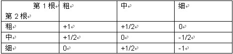 表中:0為中(不粗不細(xì)),+1為粗,-1為細(xì),+1/2為較粗,-1/2為較細(xì)。