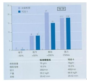 圖1 TC01精梳機(jī)與標(biāo)準(zhǔn)精梳機(jī)的紡紗質(zhì)量的對比