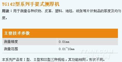 您所在的位置:紡機網(wǎng) > 產(chǎn)品庫 > YG142型系列手提式測厚機