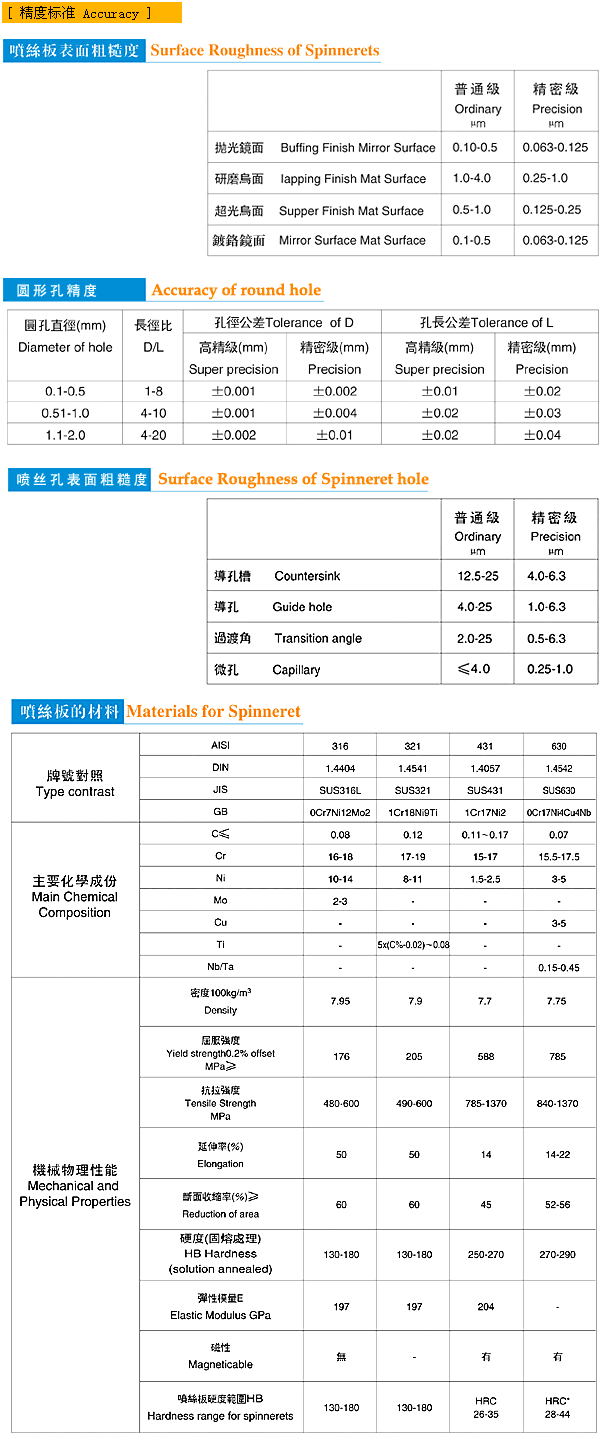 本公司生產(chǎn)的噴絲板和化纖紡絲組件采用進口日本的不銹鋼SUS630、SUS431和SUS316。