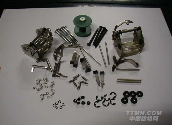 游星紗框總成、彈簧、軸簧壓片、固定軸、搖臂、搖臂軸、導(dǎo)紗器、金屬、塑料紗輪軸、襯套、軸套及卡簧
