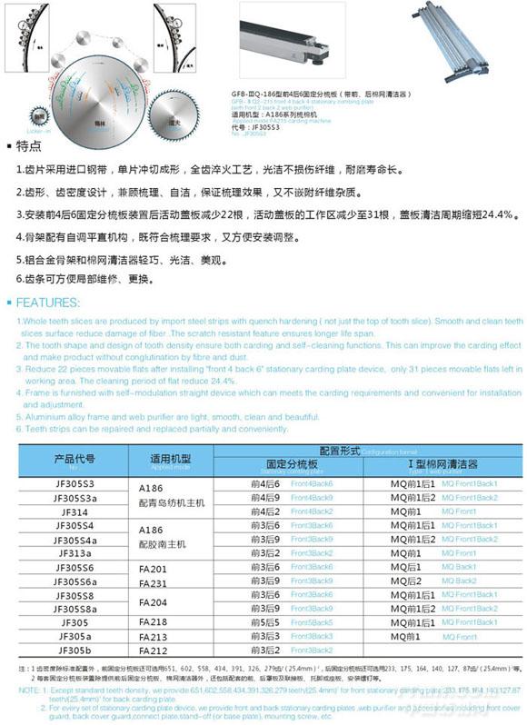 您所在的位置:紡機網(wǎng) > 產(chǎn)品庫 > GFB-ⅢQ系列梳棉機固定分梳板裝置、Ⅰ型棉網(wǎng)清潔器
