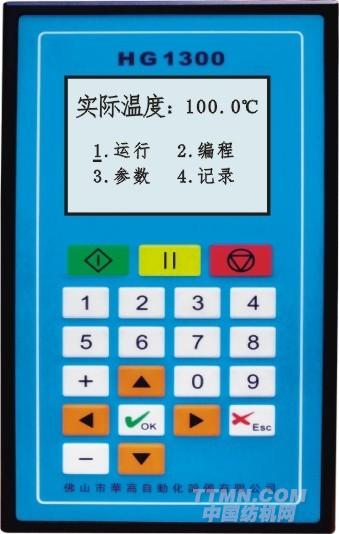 HG-1300染色機控制電腦選用液晶顯示屏幕??上葥裰形幕蛴⑽娘@示方式,采用友好的人機界面,操作簡便,讓你無需說明書也能根據(jù)界面完成大部分操作。屏幕顯示簡潔完善,一目了然。該電腦控溫效果理想,可廣泛適用于常溫染色機、高溫染色機、染紗機等控溫對象。