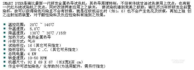 您所在的位置:紡機(jī)網(wǎng) > 產(chǎn)品庫 > 瑞比智能型試色機(jī)