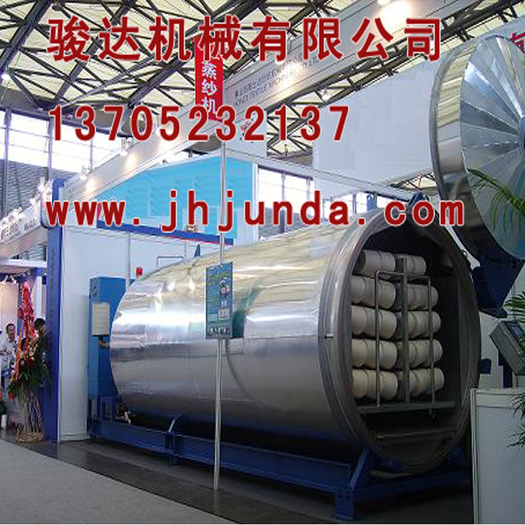 我公司吸收國外同類產(chǎn)品的精華而研制的新型自動真空蒸紗機,以下簡稱蒸紗機具有全自動化控制,生產(chǎn)效率高等優(yōu)點。成為目前理想的給濕定型設(shè)備。它適用于以棉、麻、毛、真絲、化纖等為原料的紡織單位,其用途是將具備織造條件的絲線在合并加捻后進行給濕定型,即在多次真空和一定溫度范圍下增加濕度,降低紗線伸縮率,改善產(chǎn)品手感、光澤度,提高紗線張力、強度,同時消除靜電及各部分的不平衡應(yīng)力。該蒸紗機的使用特點是:適用范圍廣泛,定型后產(chǎn)品的物理性能如:強力、伸長度等不受影響,同時使針織效率提高10%;整經(jīng)、織造效率提高15%;又使染色布均勻,還可以降低失重率.