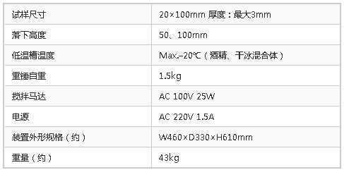 把被測試樣折彎后放入低溫槽內(nèi)進行狀態(tài)調(diào)節(jié),達到規(guī)定狀態(tài)后將加載一定負荷的重錘落下,測量試樣的微裂及裂痕。
