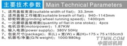 FU284C型磨蓋板針布機技術(shù)參數(shù):