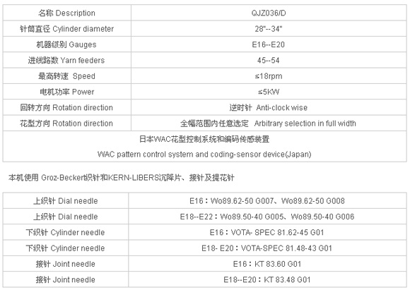 本機系計算機控制的雙面提花、移圈羅紋機。通過選針可使織針呈編織、集圈、移圈、平針等狀態(tài),以編織各種提花組織的坯布及提花移圈坯布。選配氨綸裝置,可生產高彈力織物。采用新型通用機架(二項發(fā)明專利,二項實用專利)和進口鋼絲軸承。