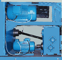 (二)傳動(dòng)系統(tǒng):SXF1492粗紗機(jī)采用四個(gè)電機(jī)獨(dú)立傳動(dòng),分別傳動(dòng)錠翼、羅拉、卷繞和龍筋升降,大大簡(jiǎn)化了傳動(dòng)機(jī)構(gòu)。取消了鐵炮粗紗機(jī)車頭傳動(dòng)齒輪箱、捻度變換齒輪、成形齒輪、龍筋升降齒輪等。調(diào)整工藝方便。減少保全保養(yǎng)的工作量。