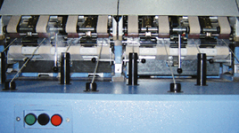 SXF1492型粗紗機(jī)采用多個(gè)高精度的旋轉(zhuǎn)編碼器與電腦組成實(shí)時(shí)檢測(cè)、反饋控制系統(tǒng),在整個(gè)紡紗過(guò)程中,按預(yù)置的數(shù)學(xué)模型自動(dòng)控制紡紗張力。防開(kāi)關(guān)車細(xì)節(jié)產(chǎn)生的控制系統(tǒng),有效的穩(wěn)定了紗線質(zhì)量。
