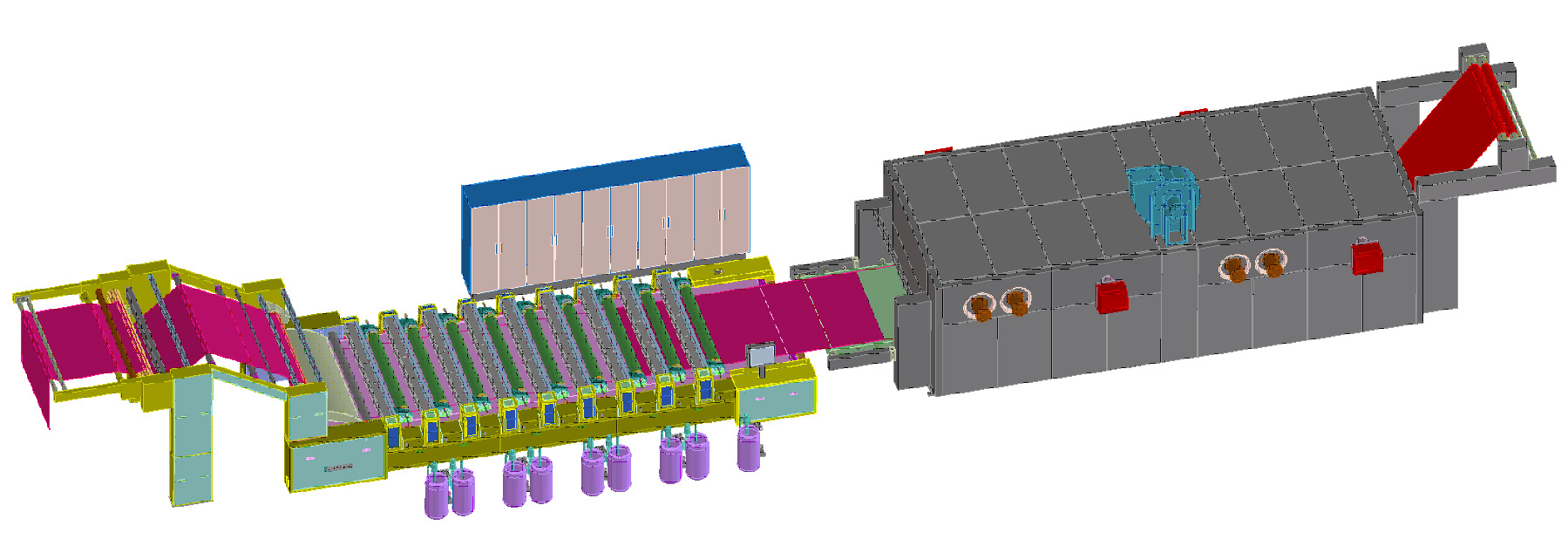 多重循環(huán)印花座:從640~1018mm,完全氣動和電子控制,變換花回時無需使用工具。操作工只需要在主控觸摸屏上設(shè)定花回,所有的印花頭自動抬起后即可安放圓網(wǎng),不需要額外的機械組件,節(jié)省了大量的操作時間。