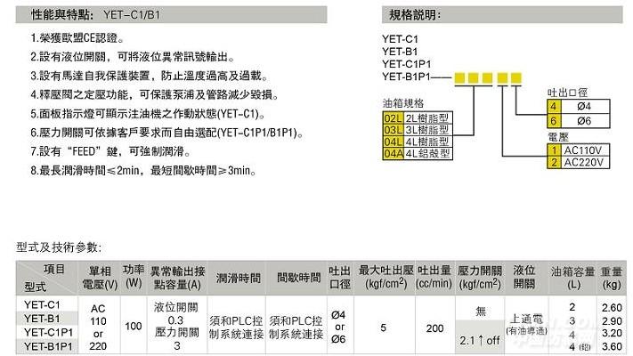 YET-B1/C1抵抗式電動注油機(外接PLC控制型)