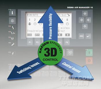 這也正是SAM的最大特點(diǎn)。SAM依托強(qiáng)大的工業(yè)電腦作為其核心, SAM不但可以將系統(tǒng)作為整體進(jìn)行控制和監(jiān)測(cè),而且,用戶也可直接觀測(cè)到運(yùn)行的過程,能耗和成本損失。最新的SAM采用凱撒創(chuàng)新的自適應(yīng)3-D控制(專利申請(qǐng)中),該控制器用于評(píng)估壓縮空氣站點(diǎn)中影響壓縮機(jī)能效的三個(gè)關(guān)鍵因素;