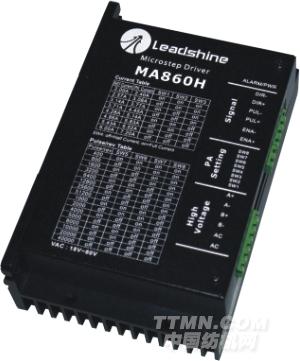 MA860H驅(qū)動器,主要驅(qū)動86、110型兩相混合式步進(jìn)電機(jī)。其微步細(xì)分?jǐn)?shù)有16種,最大步數(shù)為51200Pulse/rev;其工作峰值電流范圍為2.4A-7.2A,輸出電流共有8檔,電流的分辨率約為0.6A;具有自動半流,過壓、過流保護(hù)等功能。本驅(qū)動器為交直流供電,建議工作電壓范圍為48VAC-80VAC,電壓不超過90VAC,不低于24VAC。