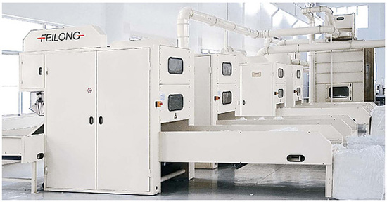 開(kāi)松各種等級(jí)捆包纖維,由電子秤稱量進(jìn)行配比,按程序控制將纖維均勻平鋪在混棉簾上。