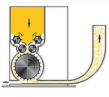 精開棉與氣壓喂棉箱中間的連續(xù)喂棉系統(tǒng)儲棉供棉設(shè)備,能提高自動喂棉均勻度。