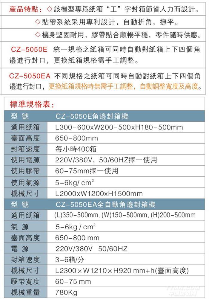 CZ-5050E/CZ-5050EA 角邊封箱機
