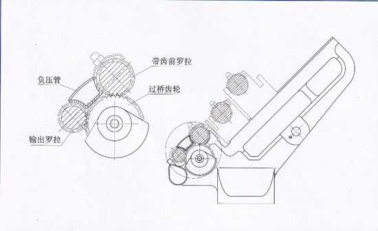 輸出羅拉安裝在異型管內(nèi),帶齒前羅拉輸出的動(dòng)力通過過橋齒輪傳遞給輸出羅拉。