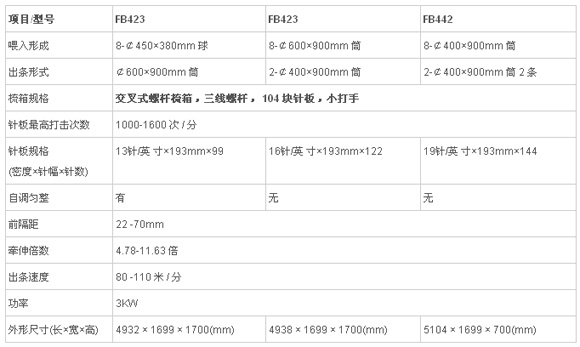 FB423 、 FB432 、 FB442 型針梳機(jī)主要用于毛精紡紡部頭、二、三道針梳工序。其作用是將毛條并合、梳理、牽伸使毛纖進(jìn)一步伸直平行,并將毛條逐步拉細(xì),均勻的毛條以供后道加工。