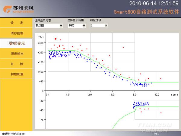 ● 整機(jī)或各錠的疵點(diǎn)散點(diǎn)圖實(shí)時(shí)顯示,并可根據(jù)疵點(diǎn)分布情況動態(tài)修整清紗曲線,切疵效果更理想。并可計(jì)算和統(tǒng)計(jì)23級紗疵分級數(shù)。