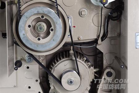 采用當今先進的超起動電機,在織機啟動時可以產生高輸出轉矩,以提高第一梭的打緯力量,同時,采用了大力矩的電磁剎車,提高了織機的制動能力,從而防止停車檔的產生,提高了織物的質量。