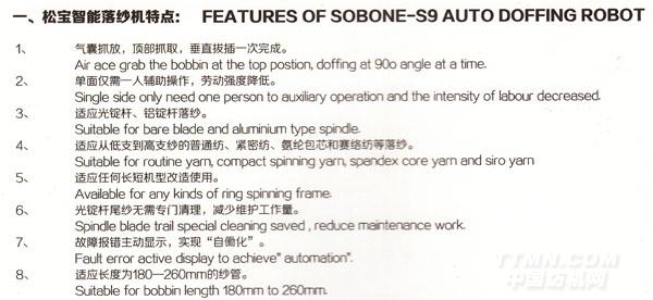 SOBONE S9環(huán)錠紗智能落紗機技術(shù)特點及參數(shù)介紹