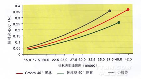 最高的離心力: Crosrol的40’錫林以及極高的表面速度,提供了強大的離心力