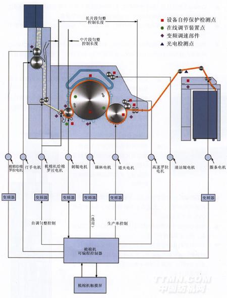 對錫林、道夫、刺輥、給棉羅拉、圈條、棉箱實行變頻調節(jié)。