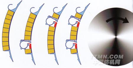 利用傳統(tǒng)的梳理排雜手段(即梳理能力),顯然已不能滿足日益高產優(yōu)質的需要。MK7充分考慮了梳理面積、離心力以及錫林梳理能力的綜合影響,從而可以提供內外質量完美的棉條。
