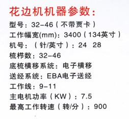 花邊機(jī)采用國內(nèi)最先進(jìn)的鋼絲多梳結(jié)構(gòu),使得花邊面料質(zhì)量更加穩(wěn)定可靠,且產(chǎn)量高,操作方便,更換花型簡單。花梳采用獨(dú)特的單卡控制補(bǔ)償程序,確保了花梳運(yùn)行的高精確度。是同類產(chǎn)品中性價(jià)比最高、且深受用戶喜愛。